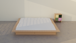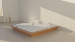 The Platform Bed consists of a wooden frame with three instead of four side panels that float 30 cm above the floor. The wall becomes the headboard. Mattress and frame build a minimalist unit and improve the sleeping experience as well as the arrangement of bedding – no space is lost to unnessecary decorative borders. The Platform Bed adds comfort by the removal of a component.