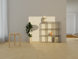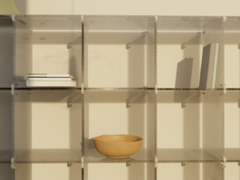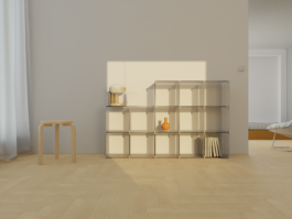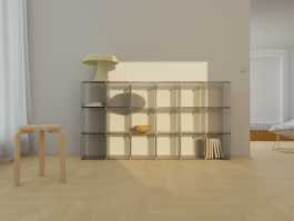 A modular shelving system consisting of polycarbonate panels connected by 3D-printed brackets. This interchangeable, lightweight system provides storage space and can be used as a room divider, in homes or in the office.